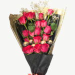 A perfect blend of indulgence and elegance—golden Ferrero Rocher chocolates paired with fresh hand-tied roses. Ideal for any special occasion.