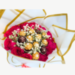 A perfect blend of indulgence and elegance—golden Ferrero Rocher chocolates paired with fresh hand-tied roses. Ideal for any special occasion.